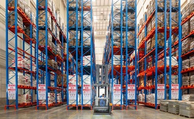 Склад был полностью переоборудован: вместо напольной складской системы была внедрена система узких проходов. Это позволило разместить многорядные стеллажи высотой 13 метров в ограниченном пространстве. Благодаря этому усовершенствованию значительно увеличилось количество доступных мест для паллет и повысилась плотность хранения на складе.