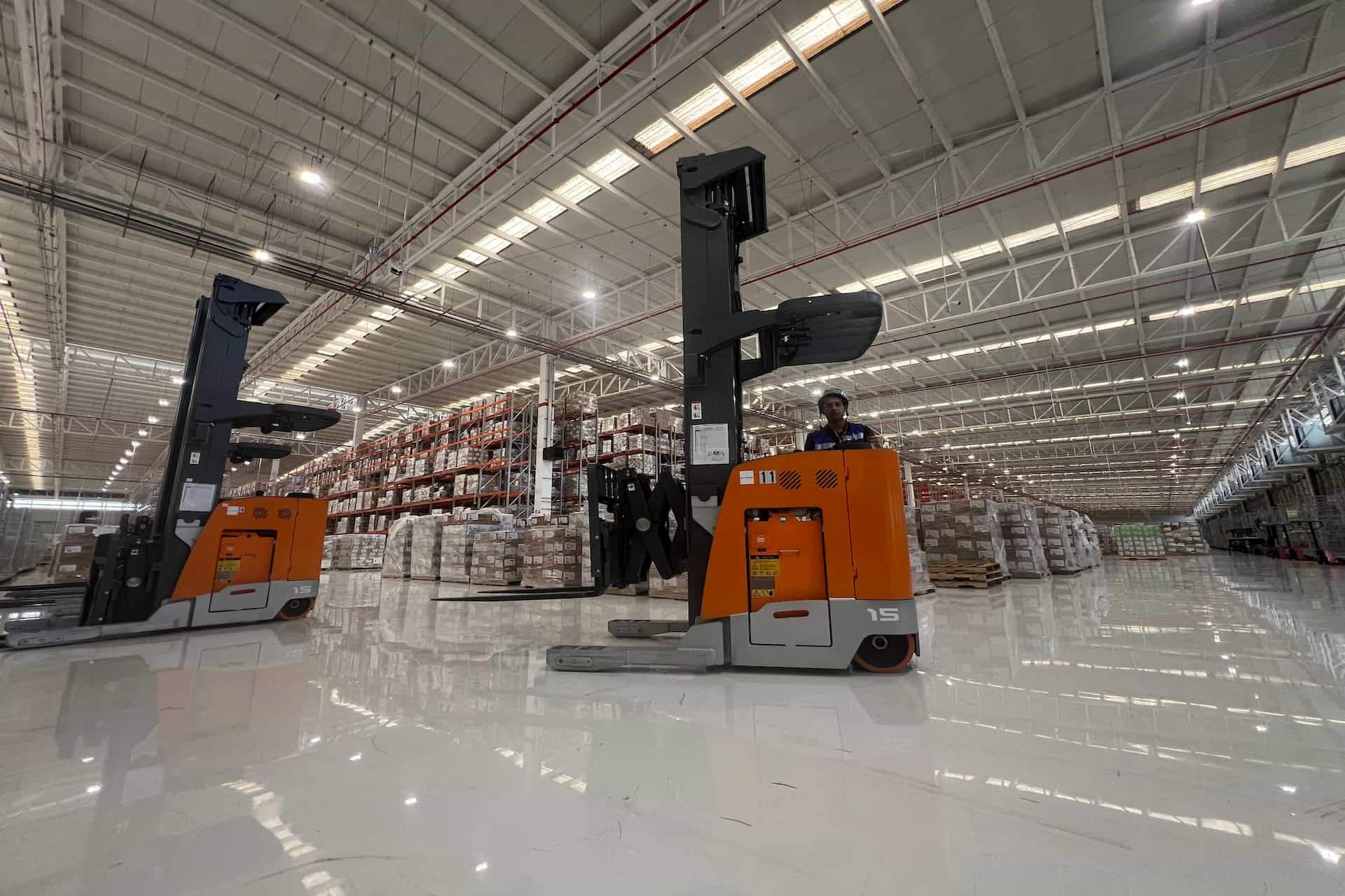 Применение серии RRE ножничные погрузчики с двойным выдвижением предоставляет больше возможностей для организации складских помещений, оптимизируя логистические операции производства и управления складской логистикой, что позволяет снизить общие затраты на эксплуатацию и управление складом.