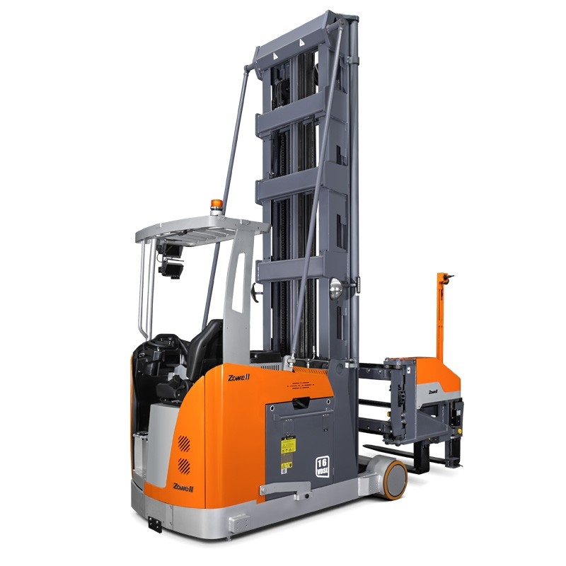 Серия Zowell VDSE трехсторонний электрический штабелер Это вилочный погрузчик, подходящий для штабелирования грузов в чрезвычайно узких проходах. Он имеет максимальную высоту подъема 12 м и максимальную грузоподъемность 1600 кг. Оснащенный вилами с электрическим управлением на 180 градусов, он делает погрузку и разгрузку товаров более удобной.