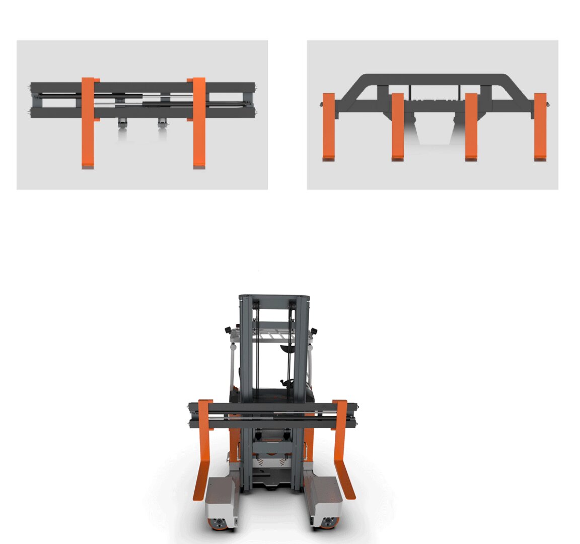 Боковой режим движения: идеально подходит для перемещения длинных грузов, позволяя работать в проходах шириной всего 2300 мм, даже с грузами весом 3 тонны.