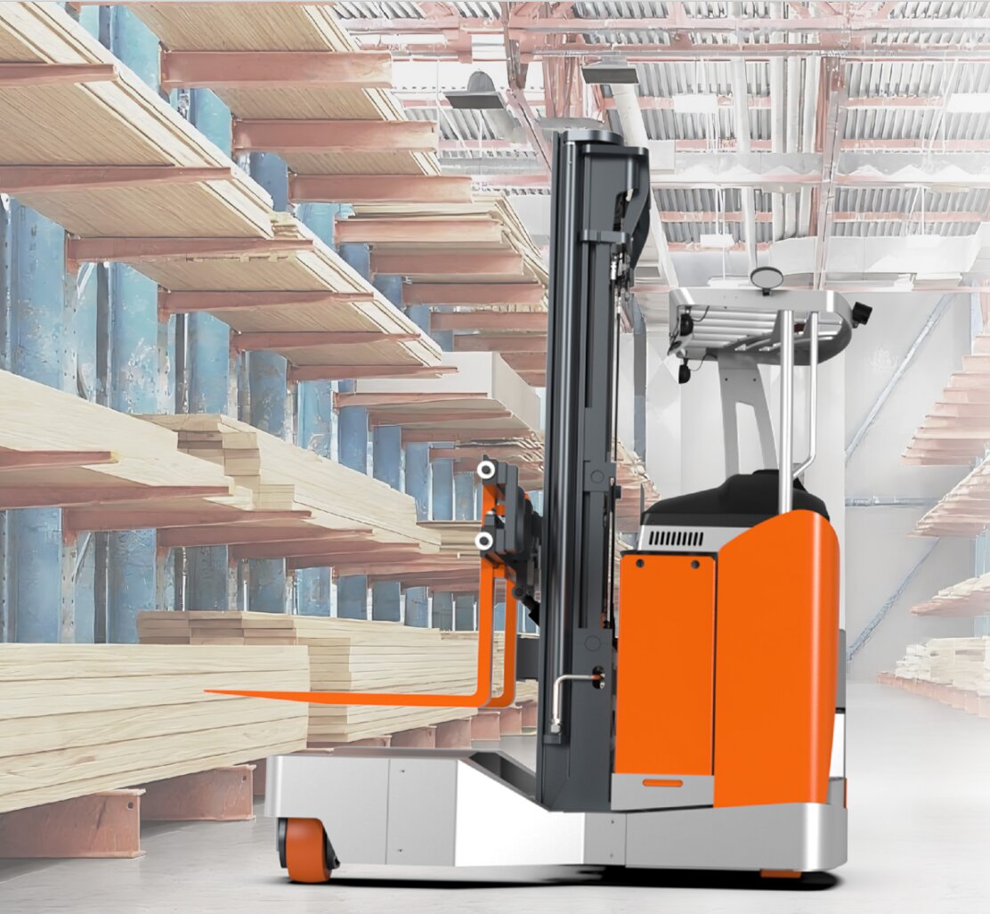 Вращение на месте: позволяет погрузчику менять направление движения внутри прохода, обеспечивая легкий доступ к стеллажам с обеих сторон, что значительно повышает эффективность работы.